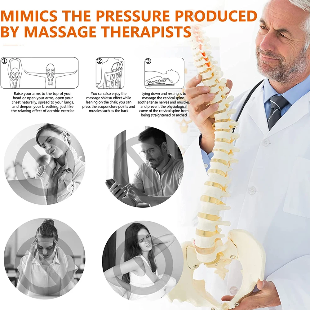 3. Gently reposition the device up or down along your spine to locate the most comfortable position for your neck, shoulders and back. Make sure that your spine is between the two rows of massage points, so as to ensure a relaxing effect.